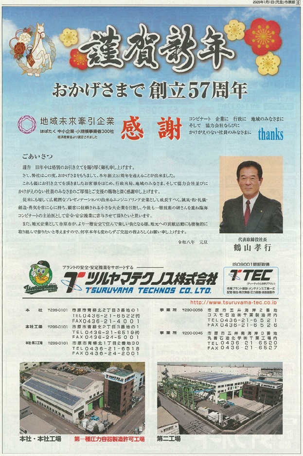 2025年度がスタートした4月1日、ツルヤマテクノス㈱の入社式と永年勤続者表彰式が行われました。
